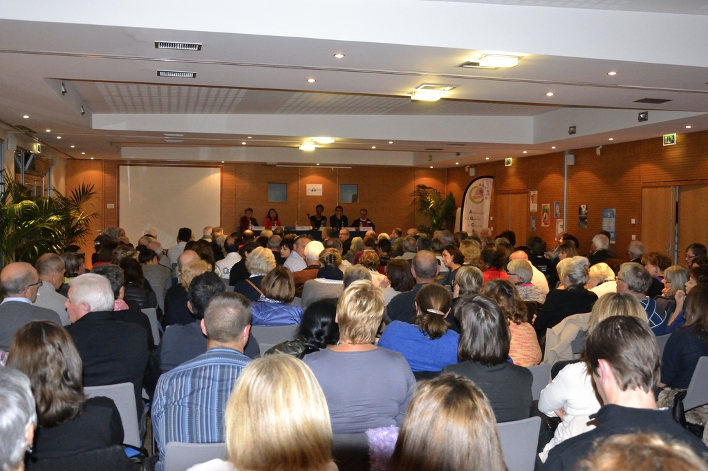 Belle soirée organisée par l'AGCPSO en partenariat avec l'AMOC. De nombreux participants (environ 200 personnes). De nombreuses questions posées aux intervenants: Mme REMIGNON(AMOC), Docteur BIRONNEAU(Agence de la Biomédecine), Docteur NUBRET(médecin référant greffés), Docteut VENIARD(cardiologue), M HERMOSO(greffé cardiaque président de l'AGCPSO)qui ont apporté leurs connaissances chacun dans leur domaine. Magnifique film de M. Jo SALVI ''après moi, mon coeur battra'' que nous remercions encore. La soirée s'est terminée par un vin de l'amitié où les personnes présentes ont continué à discuter et poser des questions sur les greffes et le don.
